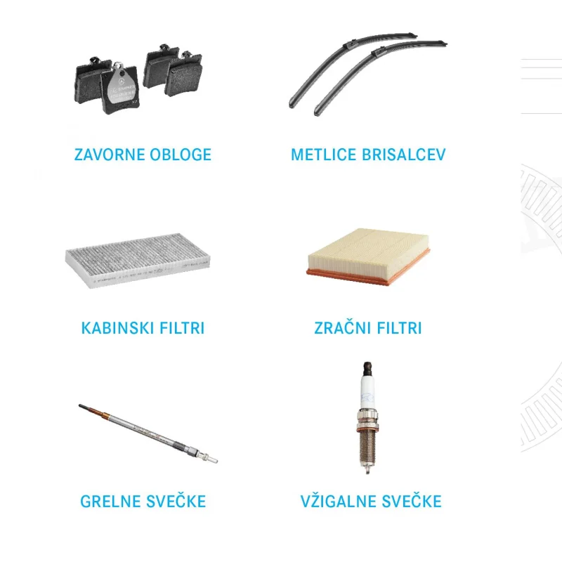 Deli so na voljo za določene modele vozil Mercedes-Benz, starejše od 5 let.